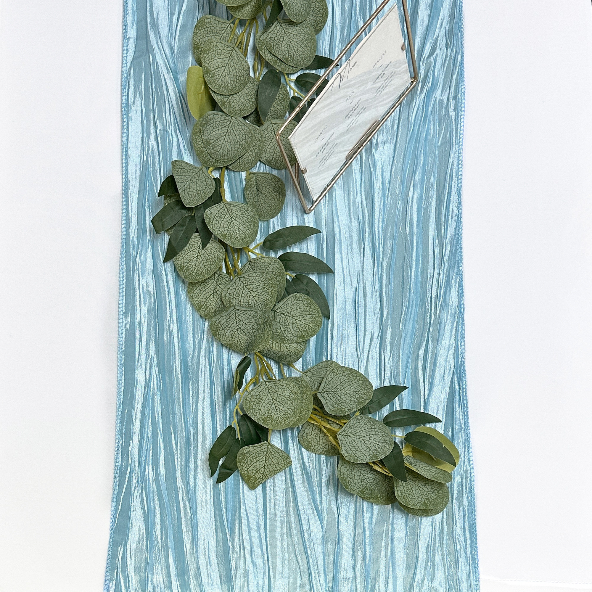 If you are styling a wedding, corporate party or any other special event that calls for exquisite designs and modern elegance, our Dusty Blue Crinkle Taffeta Table Runners will definitely fit the bill. When used to complement wedding chair covers and tablecloths, the textured look of crushed or crinkle taffeta will definitely help make a stylish statement. This taffeta table runner measures 14 inches in width and 108 inches in length and is one of our specialty linens here at Your Chair Covers. Our crinkle taffeta table runners are stain resistant and can be washed multiple times.