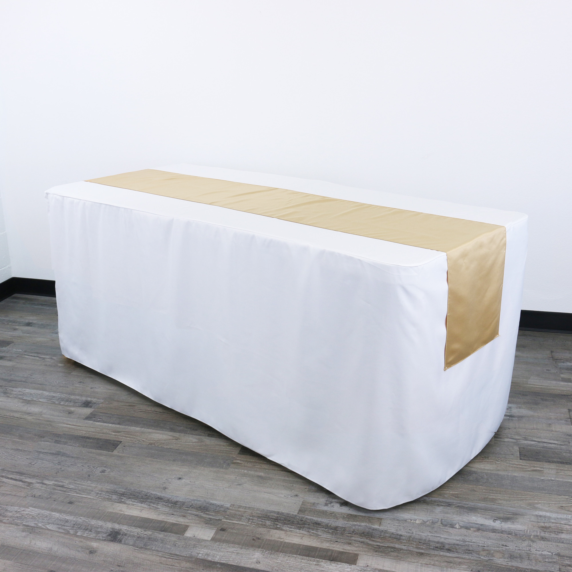 Not to be confused with the regular silky and shiny satin, Champagne L'amour Table Runners have been called many names. Lamour satin table runners, lamour matte satin runners, etc. A first cousin of the satin table runners, our 14" x 108" Champagne L'amour Table Runners combine the silky feel of satin and the matte sophistication that L'amour fabrics are known for. Lamour table runners feature a tempered sheen and they are noticeably thicker than other table runners you will find at comparable prices. Who needs to rent table runners when you can buy them cheaper?