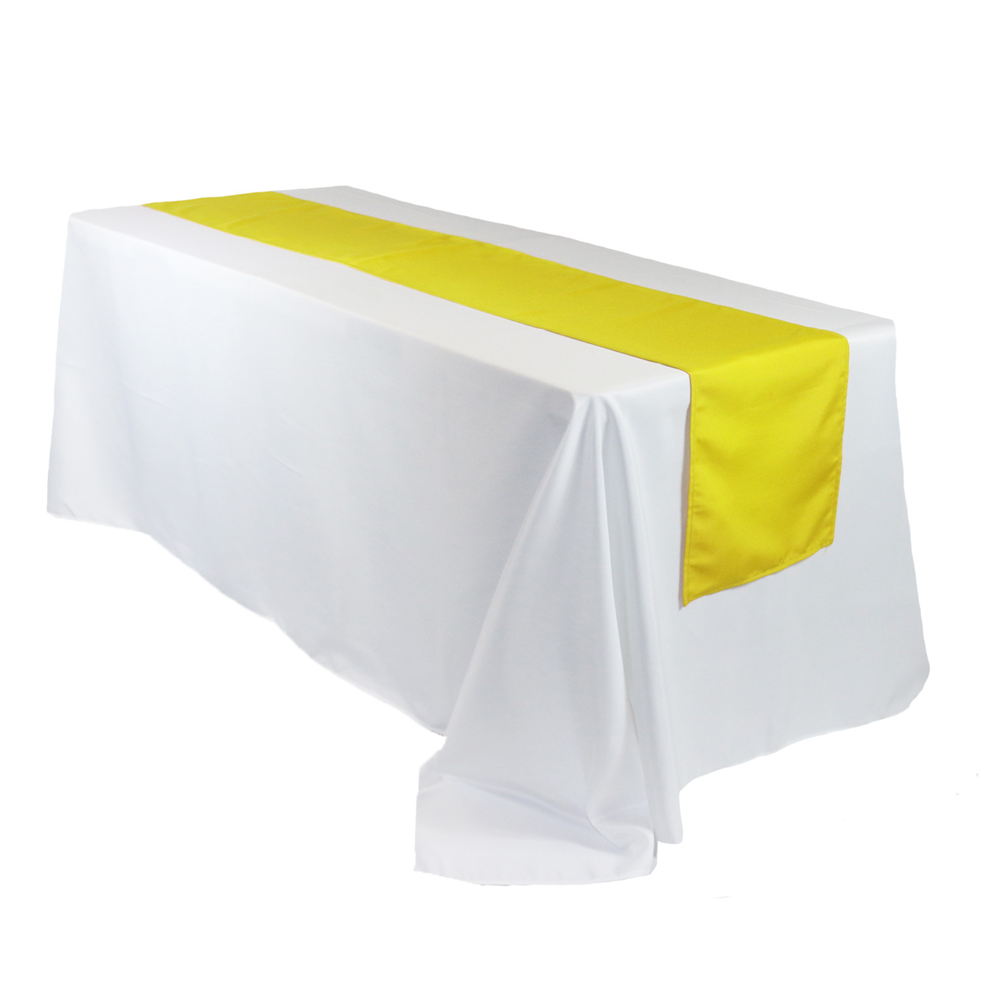 Canary Yellow Polyester Table Runners bring matte sophistication and texture to table settings, especially when combined with tablecloths and polyester napkins in complementing colors. The rich hues and the professional quality of the polyester material used to make them create a glamorous ambiance for weddings, restaurant dining settings, catering services, and corporate events. Our 14 x 108 inch polyester table runners in Canary Yellow feature hemmed edges, are stain and wrinkle resistant and can be washed countless times.