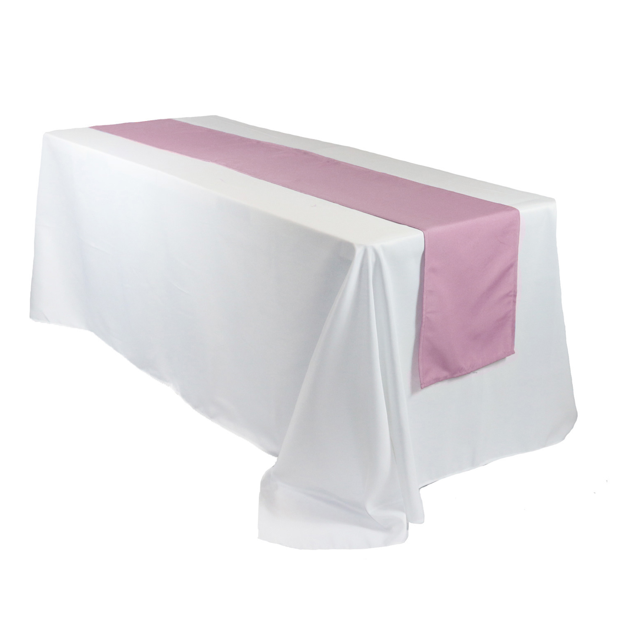 Dusty Rose Polyester Table Runners bring matte sophistication and texture to table settings, especially when combined with tablecloths and polyester napkins in complementing colors. The rich hues and the professional quality of the polyester material used to make them create a glamorous ambiance for weddings, restaurant dining settings, catering services, and corporate events. Our 14 x 108 inch polyester table runners in Dusty Rose feature hemmed edges, are stain and wrinkle resistant and can be washed countless times.