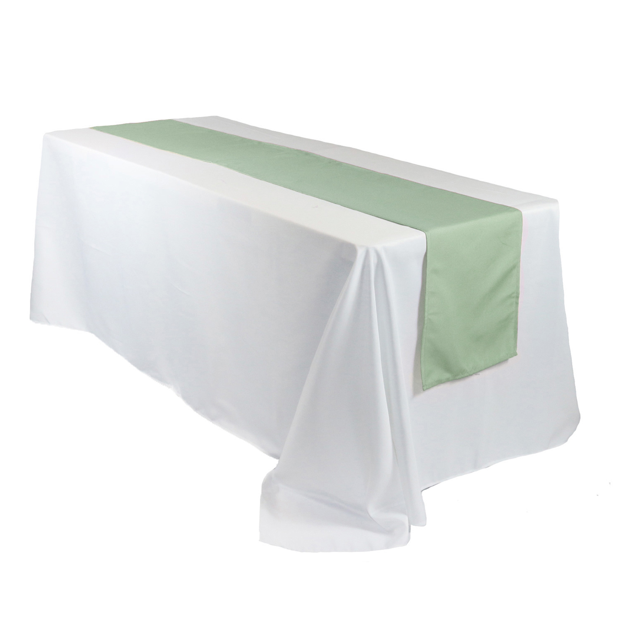 Sage Polyester Table Runners bring matte sophistication and texture to table settings, especially when combined with tablecloths and polyester napkins in complementing colors. The rich hues and the professional quality of the polyester material used to make them create a glamorous ambiance for weddings, restaurant dining settings, catering services, and corporate events. Our 14 x 108 inch polyester table runners in sage feature hemmed edges, are stain and wrinkle resistant and can be washed countless times.