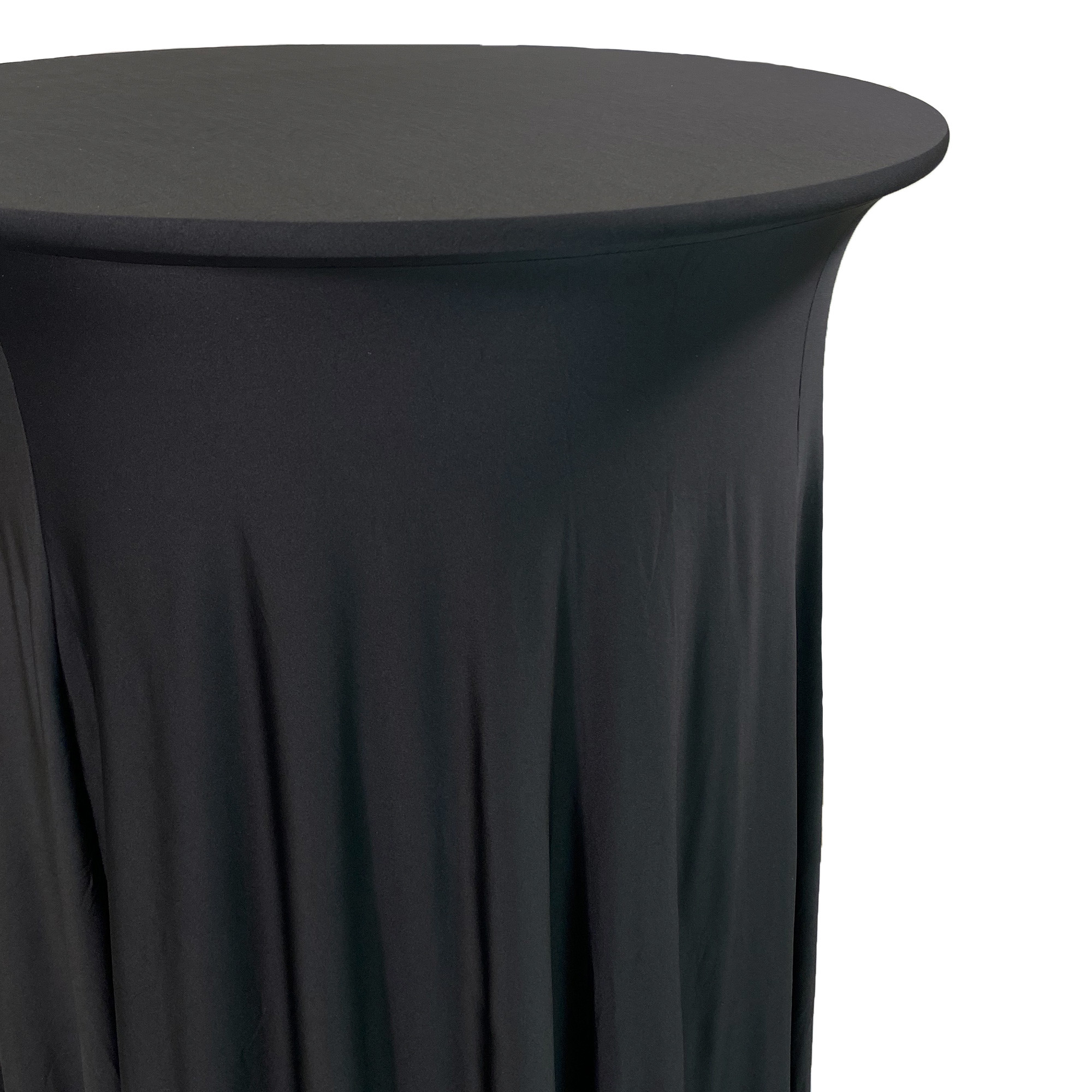 30-inch Round Highboy Cocktail Wavy Draping Spandex Table Cover – Black from Your Chair Covers exemplify modern sophistication and luxurious elegance at an affordable price. Instantly elevate the look of dull cocktail tables with the graceful flow of wavy spandex. The easy slip on feature and flowing bottom allow these covers to be the perfect match for cocktail tables regardless of their base. Made from high quality four-way stretch spandex material our 30-inch Round Highboy Cocktail Wavy Draping Spandex Table Cover – Black is designed to fit 30-inch cocktail tables with a 4-leg base or a round base. Additionally, the durable spandex material does not require ironing and can be laundered countless times making them an ideal inventory addition for linen rental companies, wedding venues, casinos, hotels, restaurants, and other event planning needs.