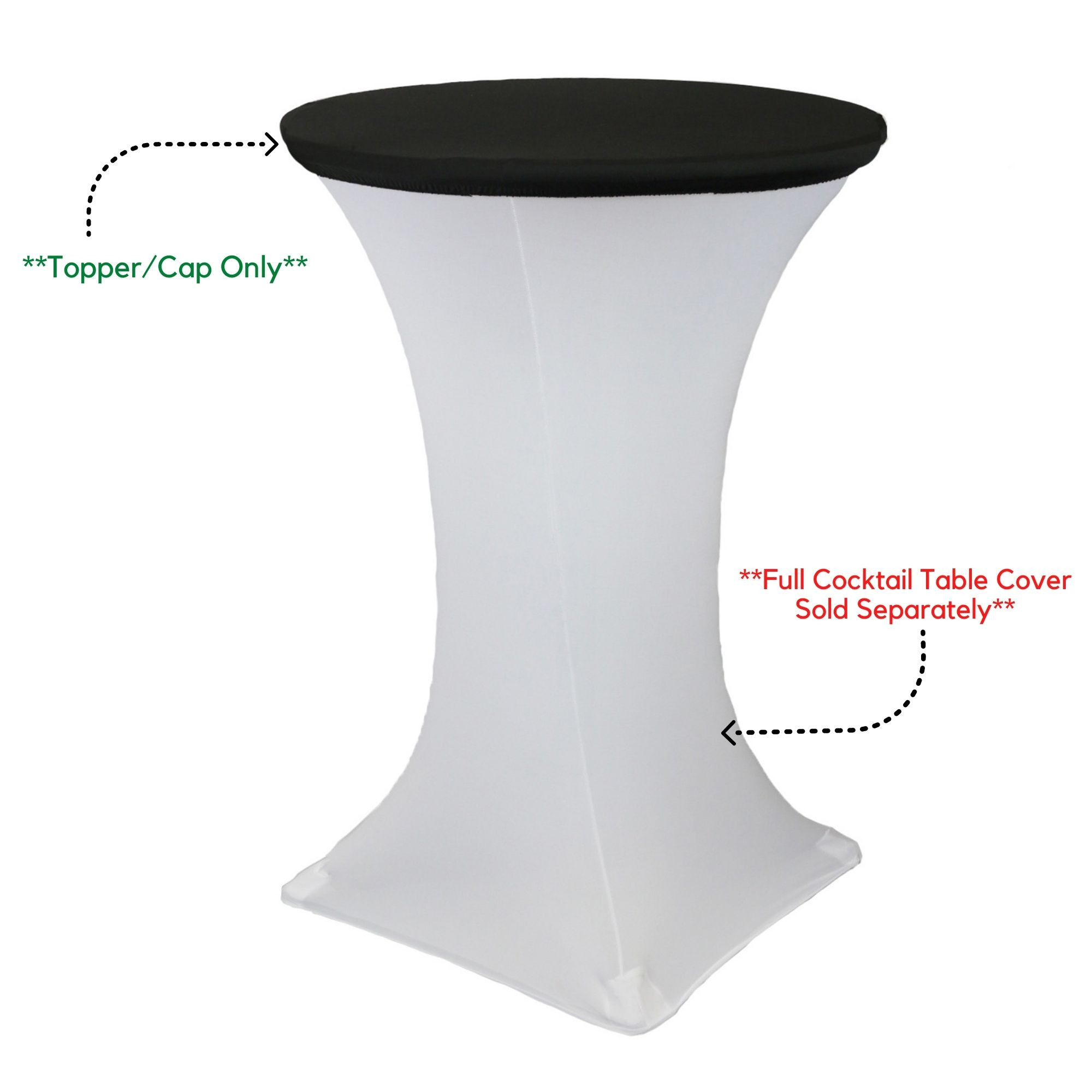 Enhance the look of your highboy or lowboy cocktail tables with our 30 inch Spandex Table Toppers in black. Use our high quality 30 inch stretch spandex table toppers over stretch spandex table covers (sold separately) to complete the look of your wedding and event tables! Made from high quality four-way stretch spandex material, our 30 inch stretch spandex table toppers in black exemplify modern sophistication and luxurious elegance. They are designed to fit 30" round highboy or lowboy tables at weddings, casinos, hotels, restaurants and other special events. Buy stretch spandex table toppers at Your Chair Covers to benefit from the discount wholesale prices that we offer.