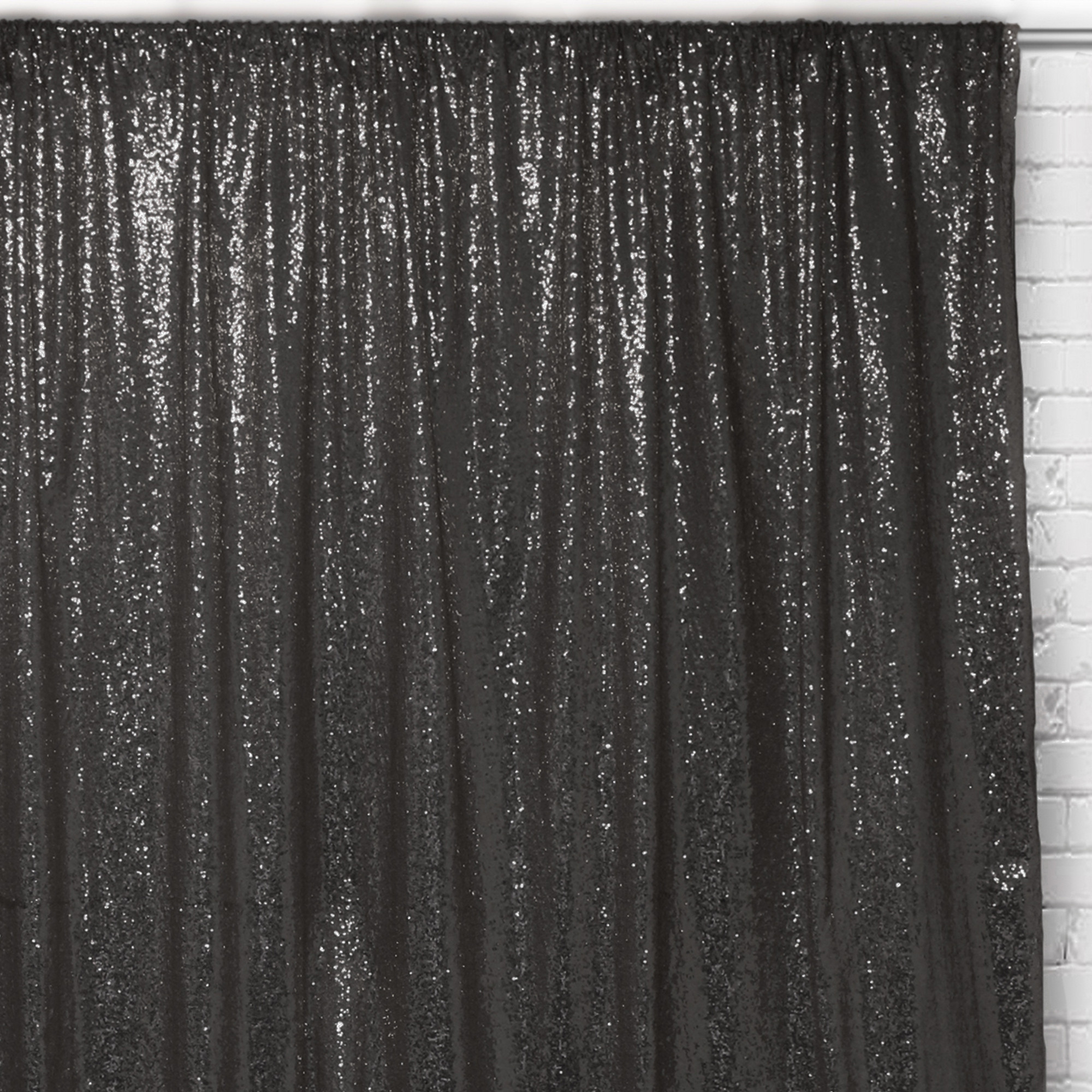 Glitz Sequin Drape/Backdrop 10 ft x 104 inches feature lustrous rows of sequins embedded on high-quality taffeta material (material is not sheer/see-through). These multipurpose drapes can be used as a glamorous photo booth backdrop, or drape to add allure and supplemental beauty for weddings, trade shows, birthdays, and any event that requires the coverage of walls or ceilings. Why rent drapes if you can purchase them brand new for the cost of a rental? These premium backdrops are a great addition to an event planner’s inventory, and also, for DIY brides. These black drapes/backdrops will exquisitely compliment your décor and create a beautiful setting for your special day.
