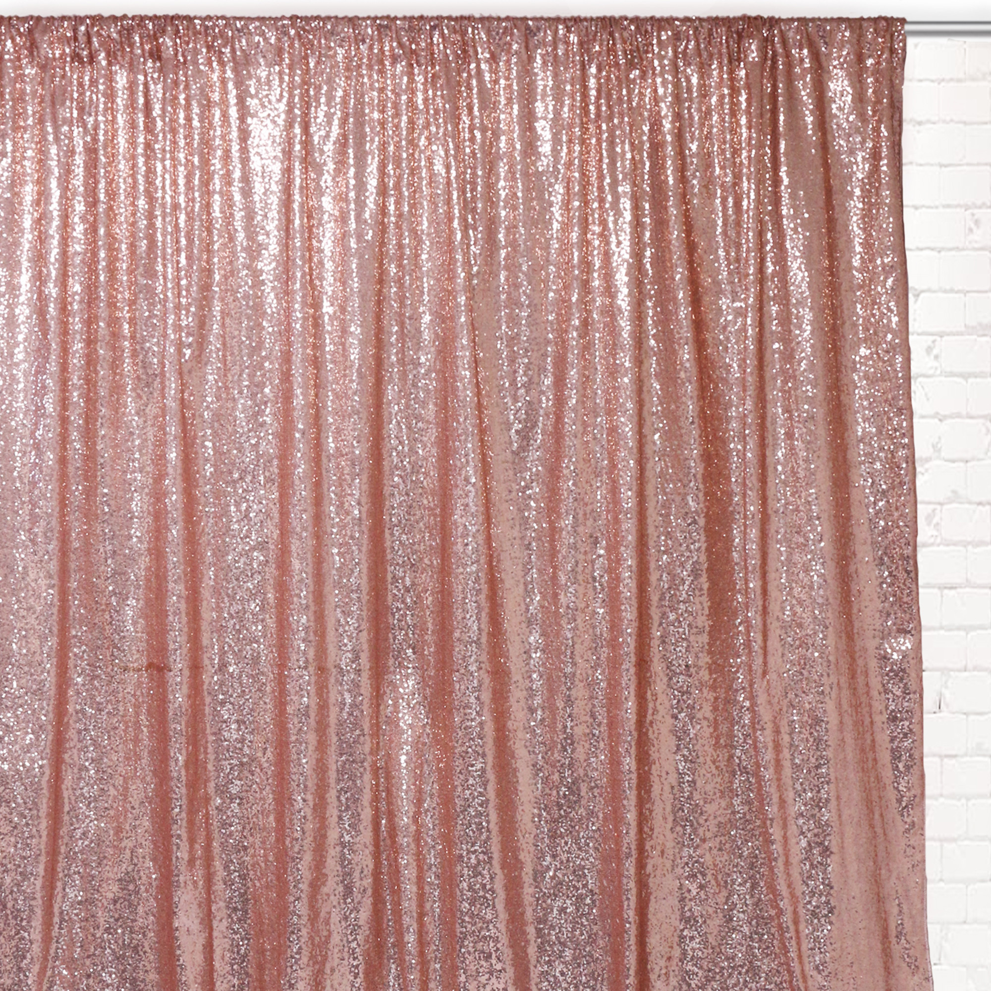 Glitz Sequin Drape/Backdrop 10 ft x 104 inches feature lustrous rows of sequins embedded on high-quality taffeta material (material is not sheer/see-through). These multipurpose drapes can be used as a glamorous photo booth backdrop, or drape to add allure and supplemental beauty for weddings, trade shows, birthdays, and any event that requires the coverage of walls or ceilings. Why rent drapes if you can purchase them brand new for the cost of a rental? These premium backdrops are a great addition to an event planner’s inventory, and also, for DIY brides. These blush drapes/backdrops will exquisitely compliment your décor and create a beautiful setting for your special day.