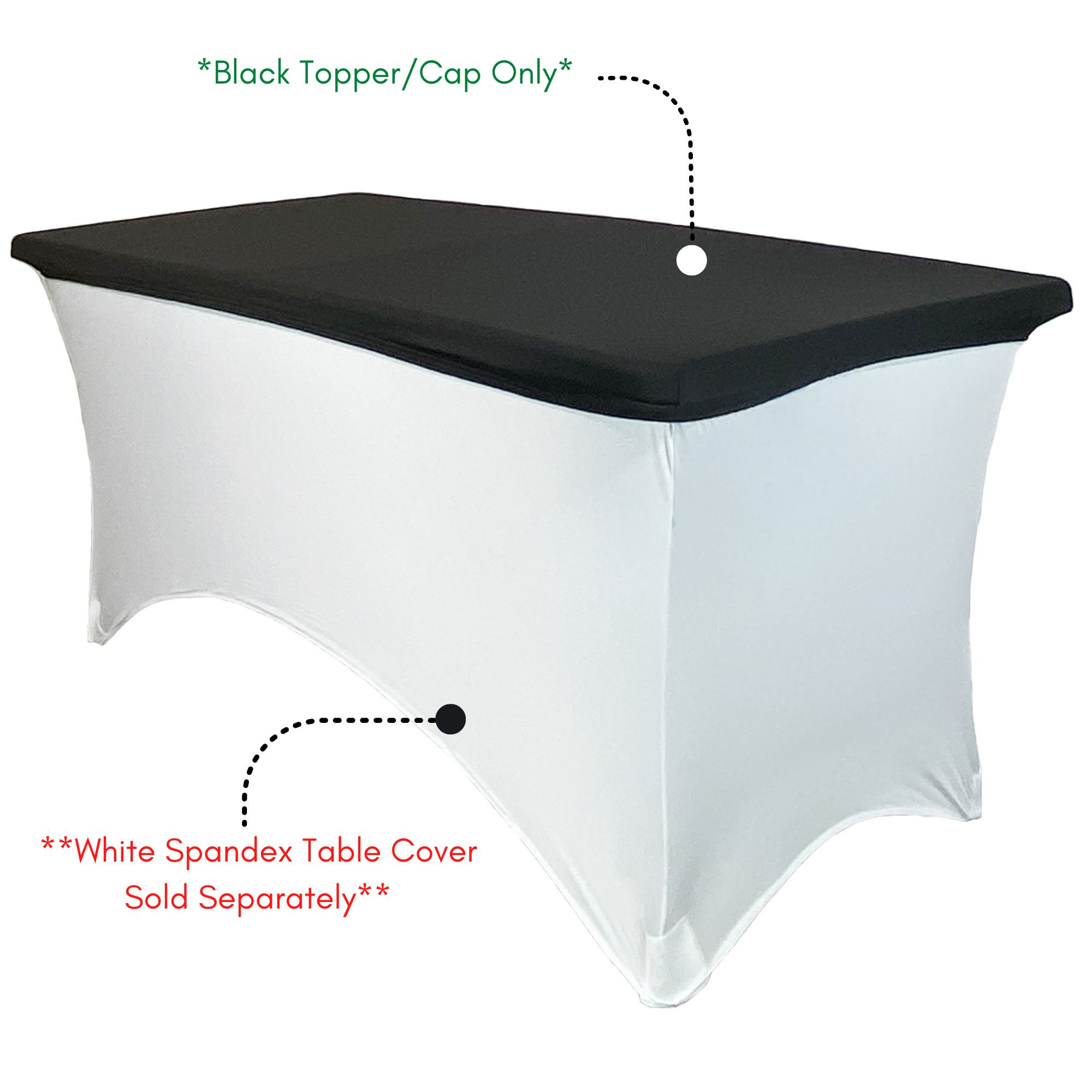 SIZE: 6-foot/72-inch rectangular **topper only/white table cover sold separately **