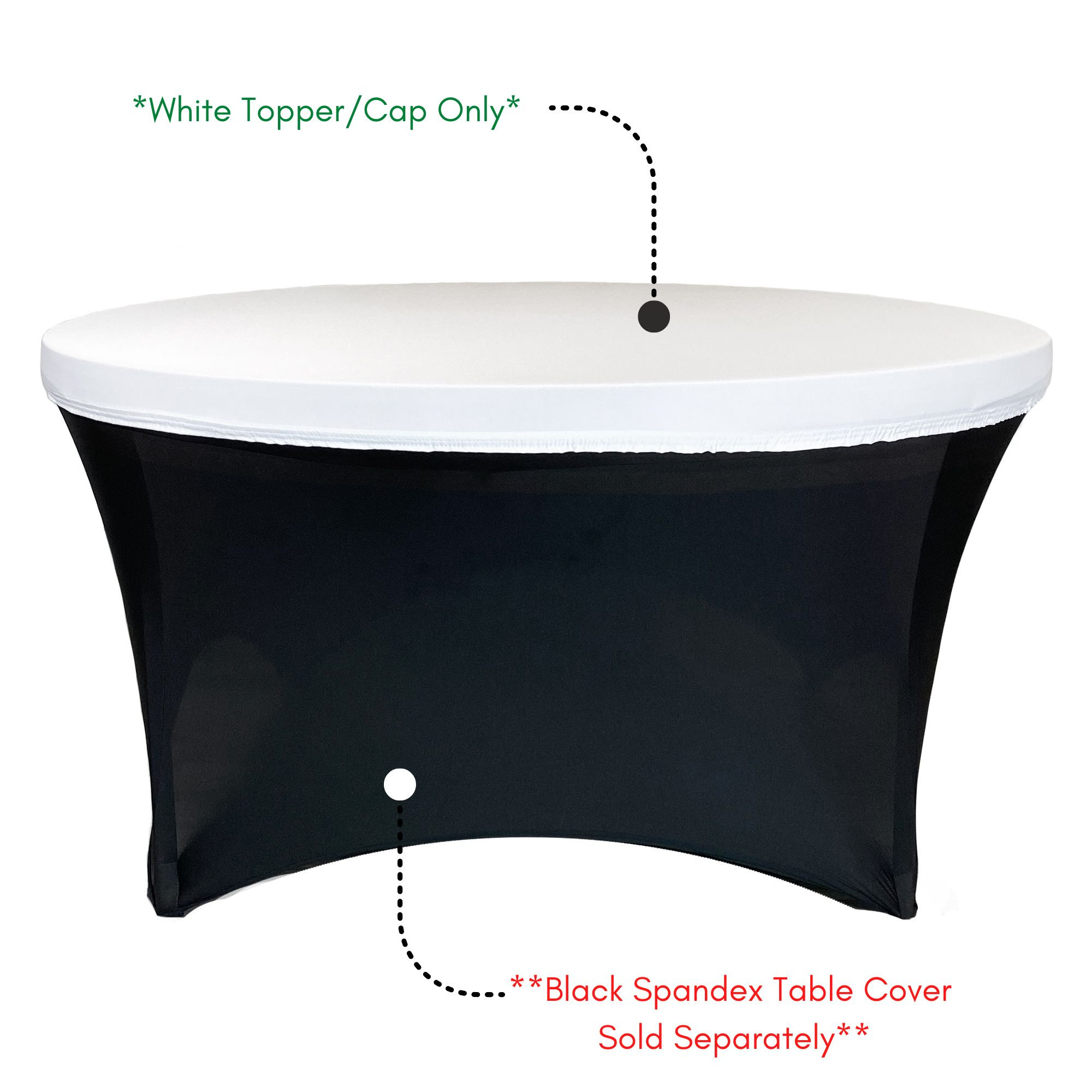 Enhance the look of your banquet tables our 6 ft. Round Spandex Table Toppers in white. Use our high quality 6 ft. Round Spandex Table Toppers over stretch spandex table covers (sold separately) to complete the look of your wedding and event tables! Made from high quality four-way stretch spandex material, our 6-foot round stretch spandex table toppers in white exemplify modern sophistication and luxurious elegance. They are designed to fit 6-foot or 72-inch rectangular banquet tables at weddings, casinos, hotels, restaurants and other special events. Buy stretch spandex table toppers at Your Chair Covers to benefit from the discount wholesale prices that we offer.