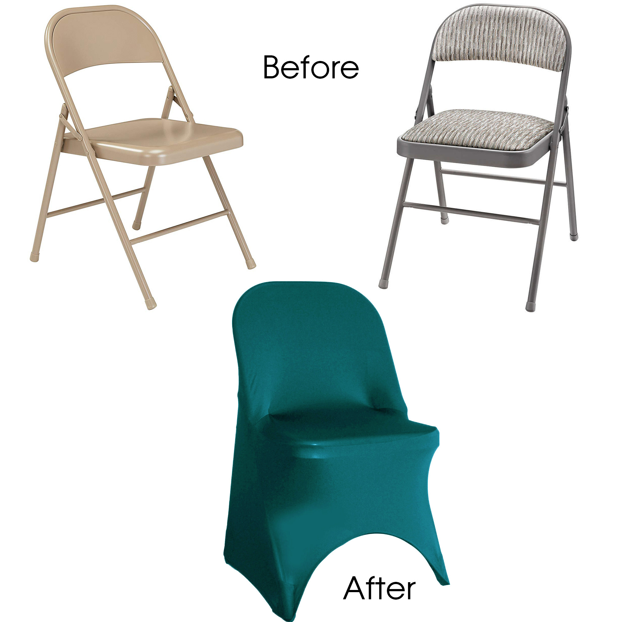 NOTE: There are inferior versions of these chair covers in the market today. We recommend purchasing a sample before placing a large order on our website as there is a huge quality difference among spandex folding chair covers that are available for sale online and at physical stores. For an enhanced look, we recommend using these chair covers with satin, organza, spandex, damask, lamour or crinkle taffeta chair sashes.