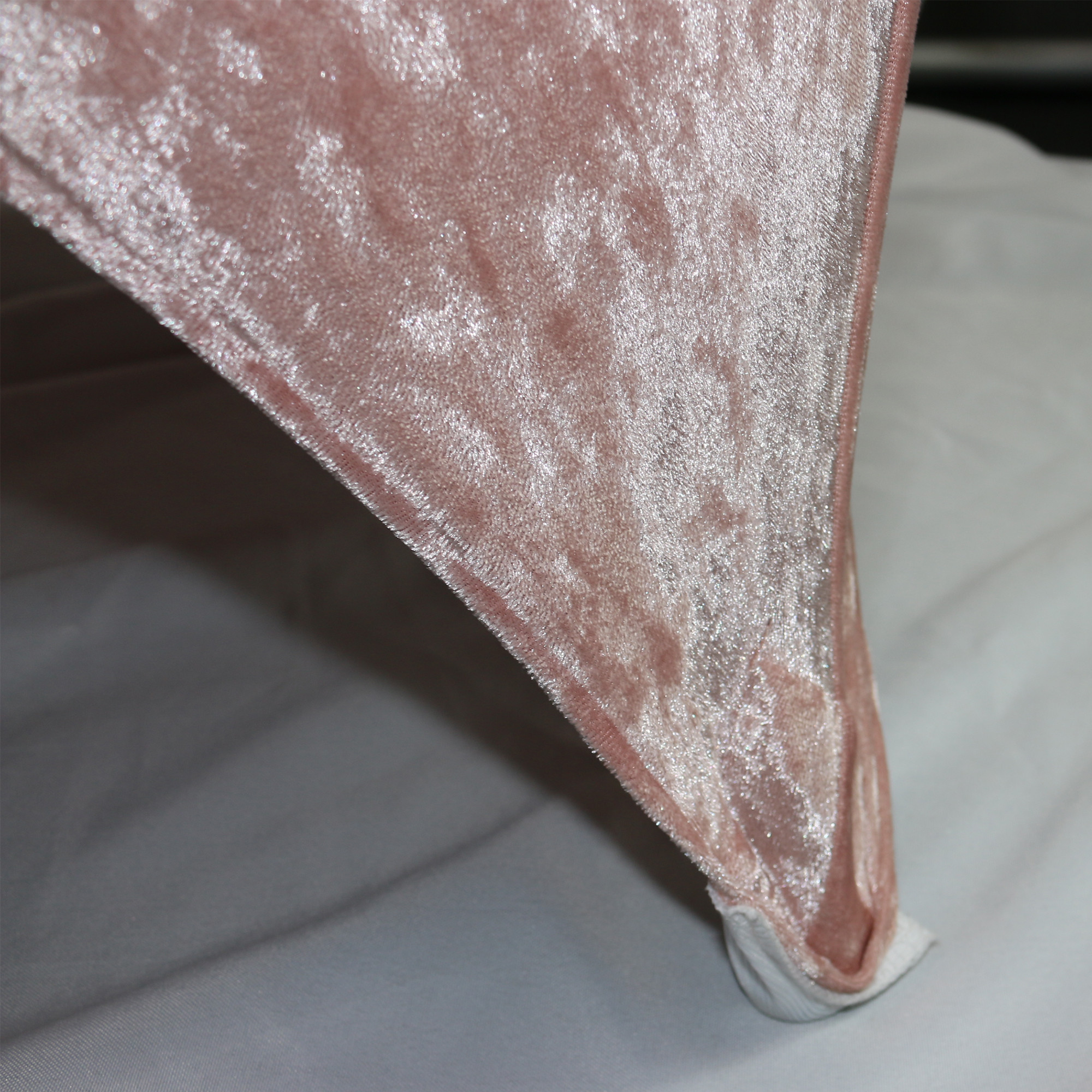 Crafted from professional grade velvet stretch spandex fabrics, our blush velvet 8 ft rectangular spandex table covers are one of our best-selling tablecloths here at Your Chair Covers. For years now, we've been supplying these spandex linen table covers to tablecloth rental companies, restaurants, wedding venue owners, hotel and catering business owners. These types of stretch tablecloths stylishly contour all aspects of the table. Each table cover features hemmed edges to prevent fraying and to display elegantly. The deep elastic foot pockets are very durable too! If you're planning a lavish event, spandex table covers from Your Chair Covers make an excellent choice because our wholesale tablecloth company is known for meeting hotel and restaurant product quality standards.
